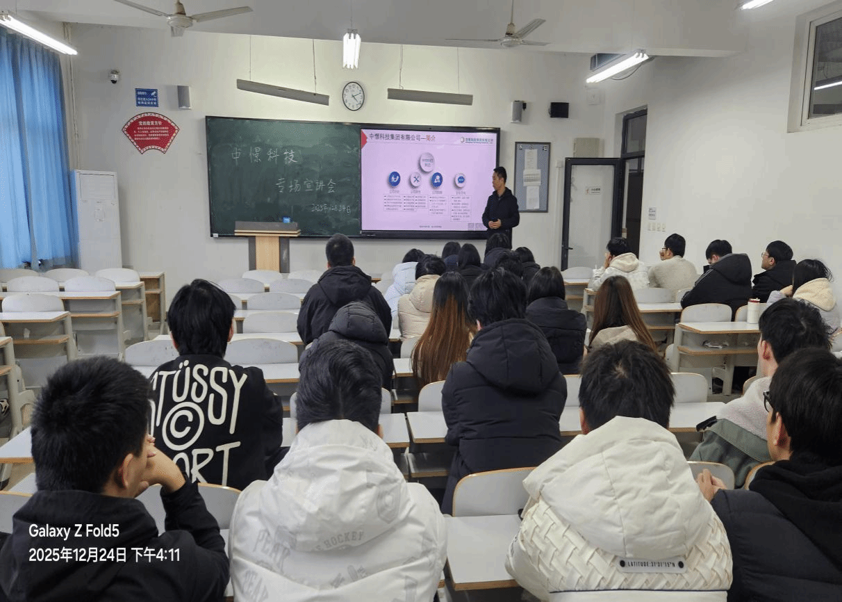 2025年12月24日下午,人工智能学院特邀中憬科技集团有限公司举办专场招聘宣讲会。企业市场总监李绍阳、人力资源部副主任高军杰带队到校,为学院学生搭建职业对接平台,助力毕业生精准对接信息通信领域的优质就业资源。