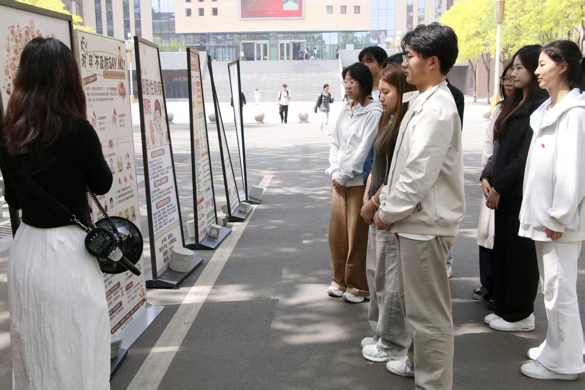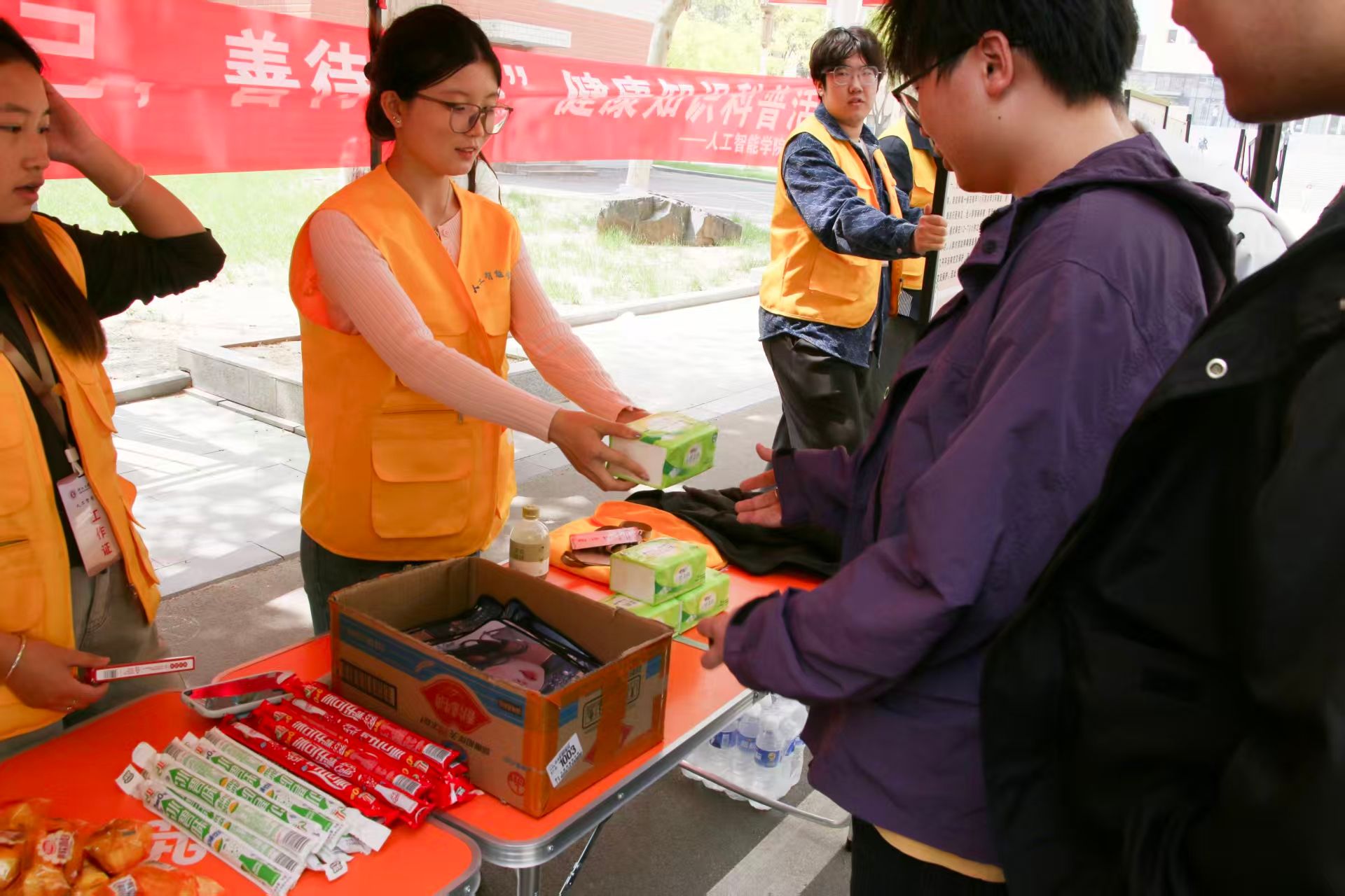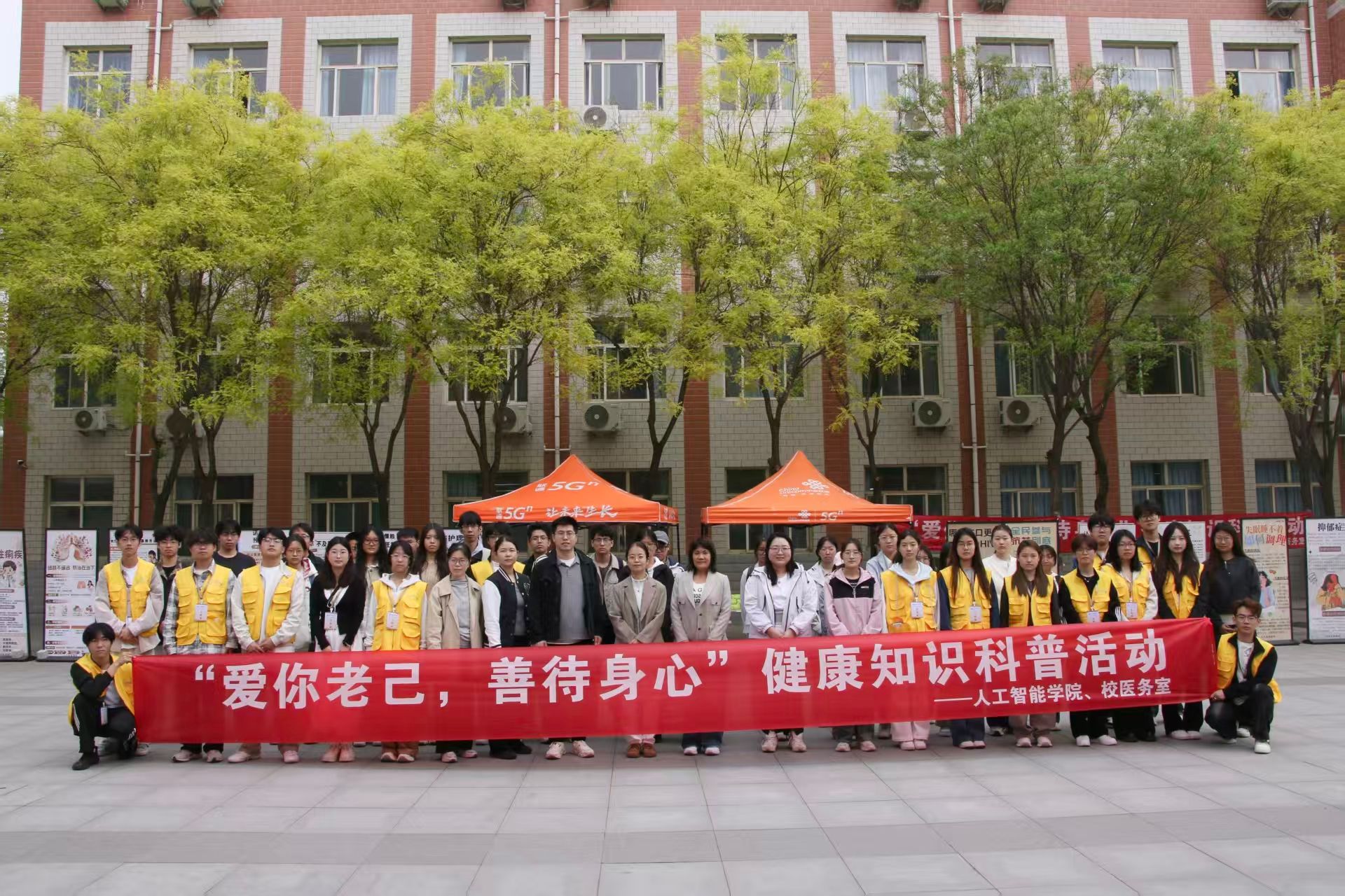 2026年4月17日,人工智能学院联合校医务室在次教正门门口开展“爱你老己,善待身心”主题活动。校医院院长赤树英,人工智能学院学管办主任杨家腾,团总支书记王凤以及学院辅导员共同参与此次活动。