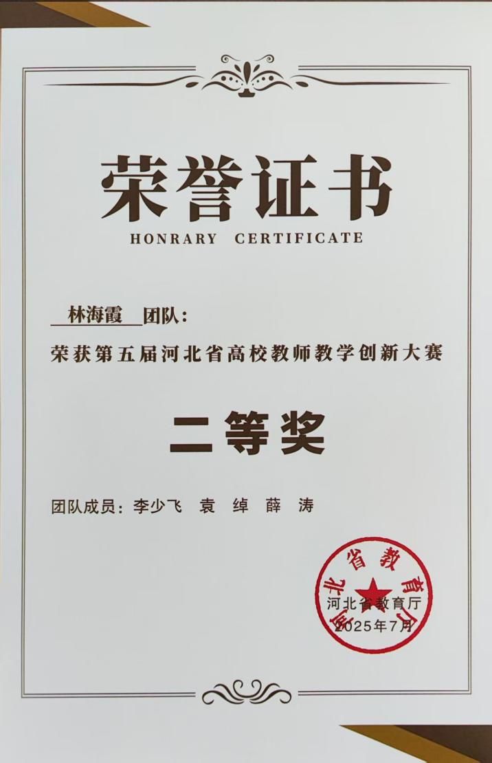 3.第五届河北省高校教师教学创新大赛,林海霞团队获二等奖。