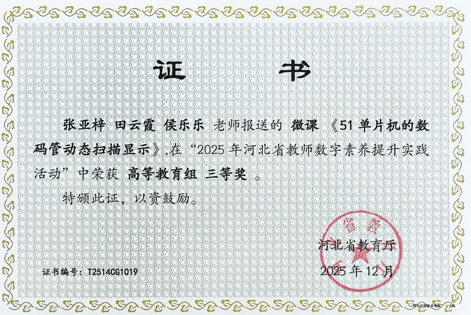 2.2025年河北省教师数字素养提升实践活动,人工智能学院两支教师团体分别获奖。
